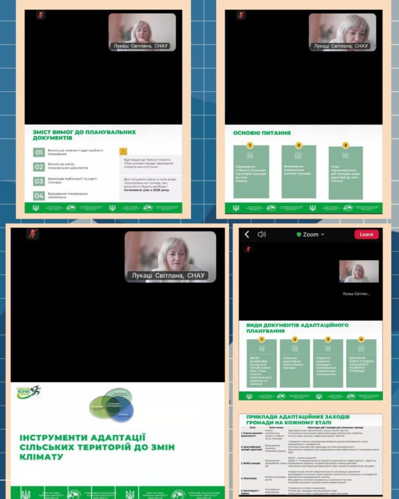 «Актуалізація напрямів сільського розвитку громад, узгоджених зі Стратегією розвитку сільського господарства та сільських територій до 2030 року. Обов’язки громад щодо кліматичної адаптації. Види документів адаптаційного планування».
