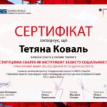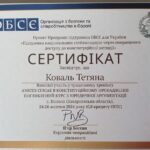 - Всеукраїнське науково-педагогічне підвищення кваліфікації «Сучасні аспекти та актуальні підходи в навчанні, викладанні й дослідженні державно-правових дисциплін» (27.02.2023 - 09.04.2023 р., 180 годин, 6 кредитів ЄКТС), Свідоцтво № ADV-270222-LSI від 09.04.2023 р.