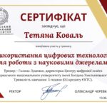 - Участь у тренінгу Центру цифрової освіти Черкаського національного університету імені Богдана Хмельницького «Використання цифрових технологій для роботи з науковими джерелами» (10 червня 2025 р.)