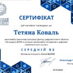 - Тренігова програма Центру цифрової освіти Черкаського національного університету імені Богдана Хмельницького та успішне тестування з цифрової компетентності (1 жовтня 2024 р.)