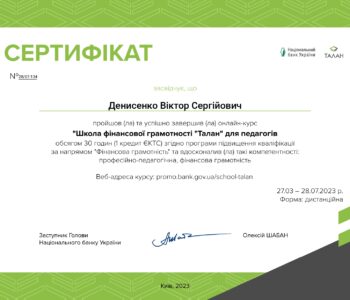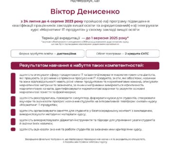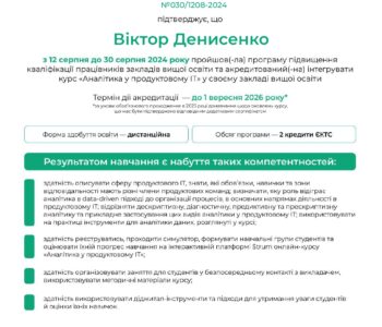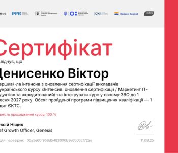 Викладач кафедри моделювання економіки і бізнесу Віктор Денисенко протягом липня-листопада 2025 року успішно завершив інтенсиви з оновлення сертифікації в межах