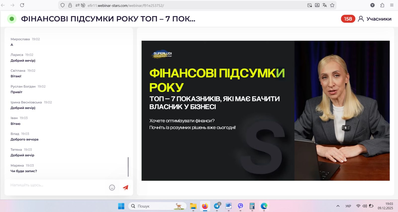 9 грудня 2025 р. студенти та викладачі кафедри обліку і фінансів долучились до експертного онлайн-вебінару на тему «Фінансові підсумки року. ТОП-7