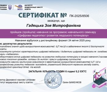 24 квітня 2025 року доцентка кафедри моделювання кафедри моделювання економіки і бізнесу Гадецька Зоя взяла участь в онлайн-форматі у роботі навчального семінару