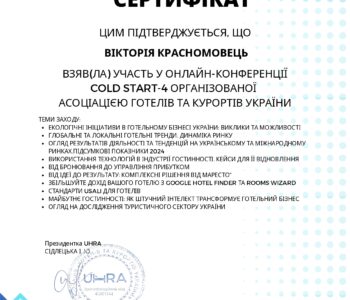 29 січня 2025 року доцент кафедри туризму та готельно-ресторанної справи Вікторія Красномовець долучилася до четвертого онлайн-заходу серії COLD START, організованого