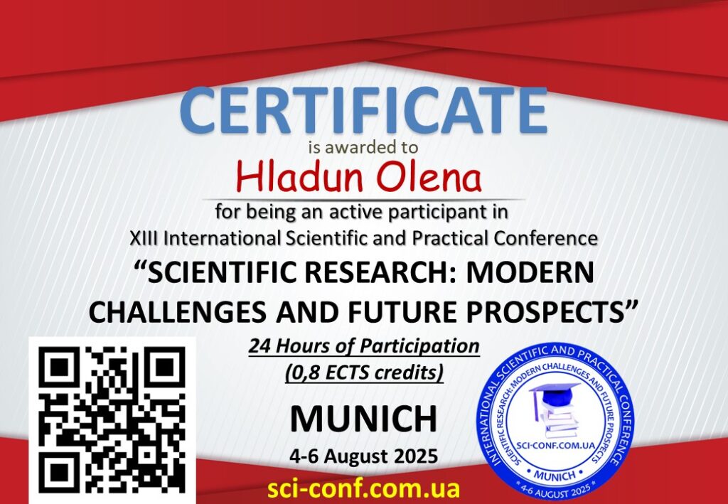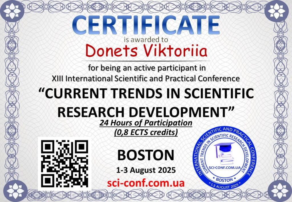 - Nataliia Korogod, Olha Urazovska «Digitalization and security: the latest solutions in military medicine» // Innovations in science: current research and advanced technologies : Scientific monograph. Part 2. Riga, Latvia: Baltija Publishing, 2025. 684 p.