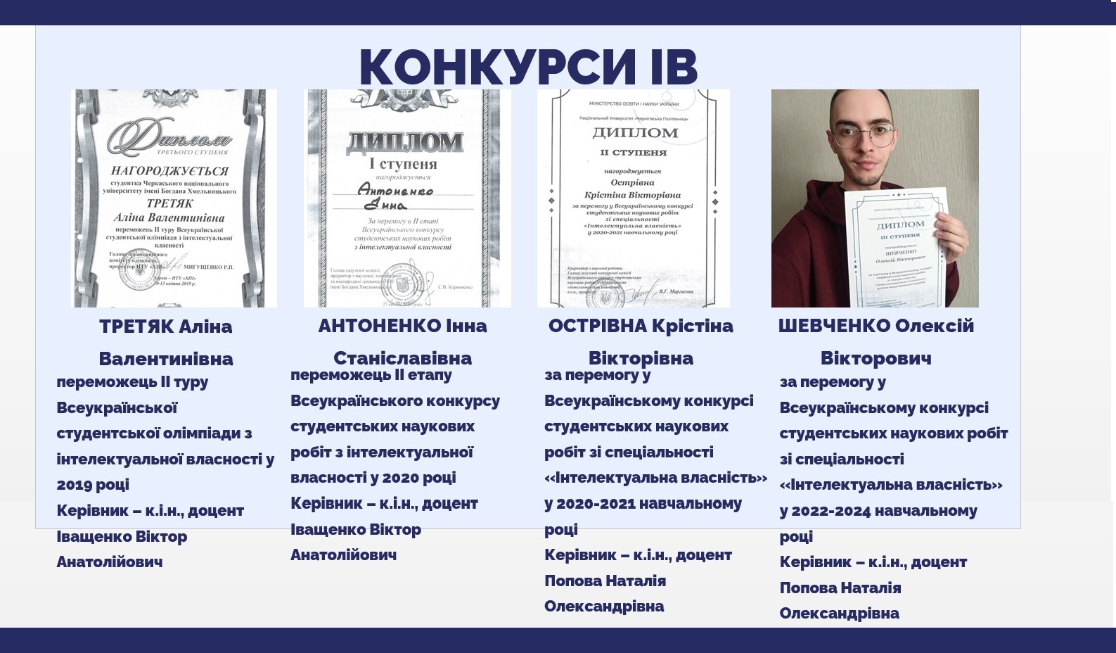 підготовка до участі студентів у всеукраїнських студентських конкурсах наукових робіт з приватного права та інтелектуальної власності;