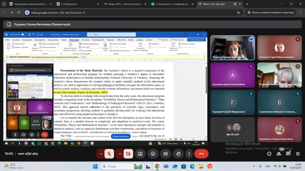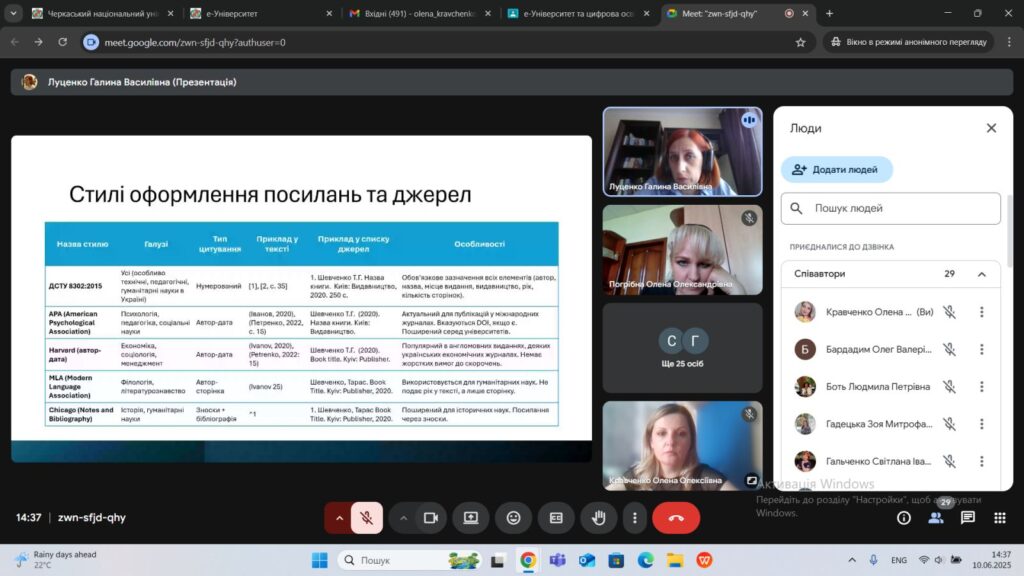 Представники кафедри підприємництва і маркетингу взяли участь в онлайн-тренінгу на тему “Використання цифрових технологій для роботи з науковими джерелами”, організованому Центром цифрової освіти Черкаського національного університету імені Богдана Хмельницького.