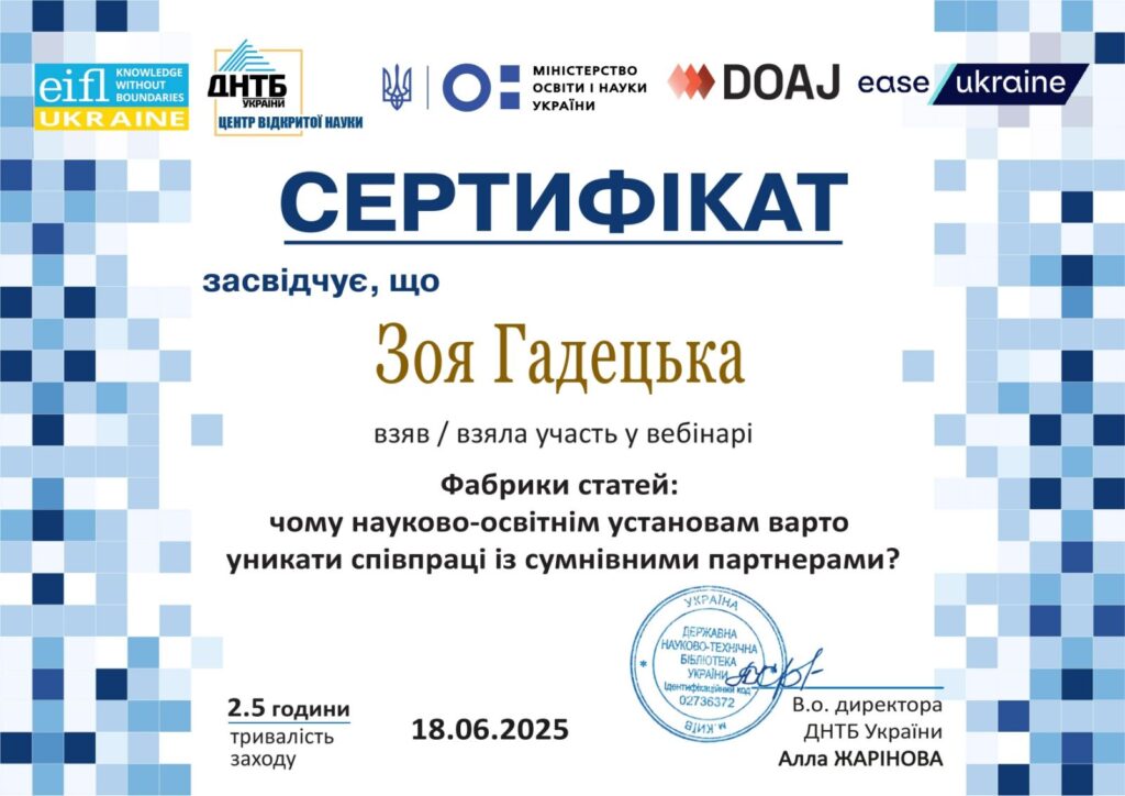 (h-індекси: Scopus — 8, Web of Science — 1, Scholar — 11)