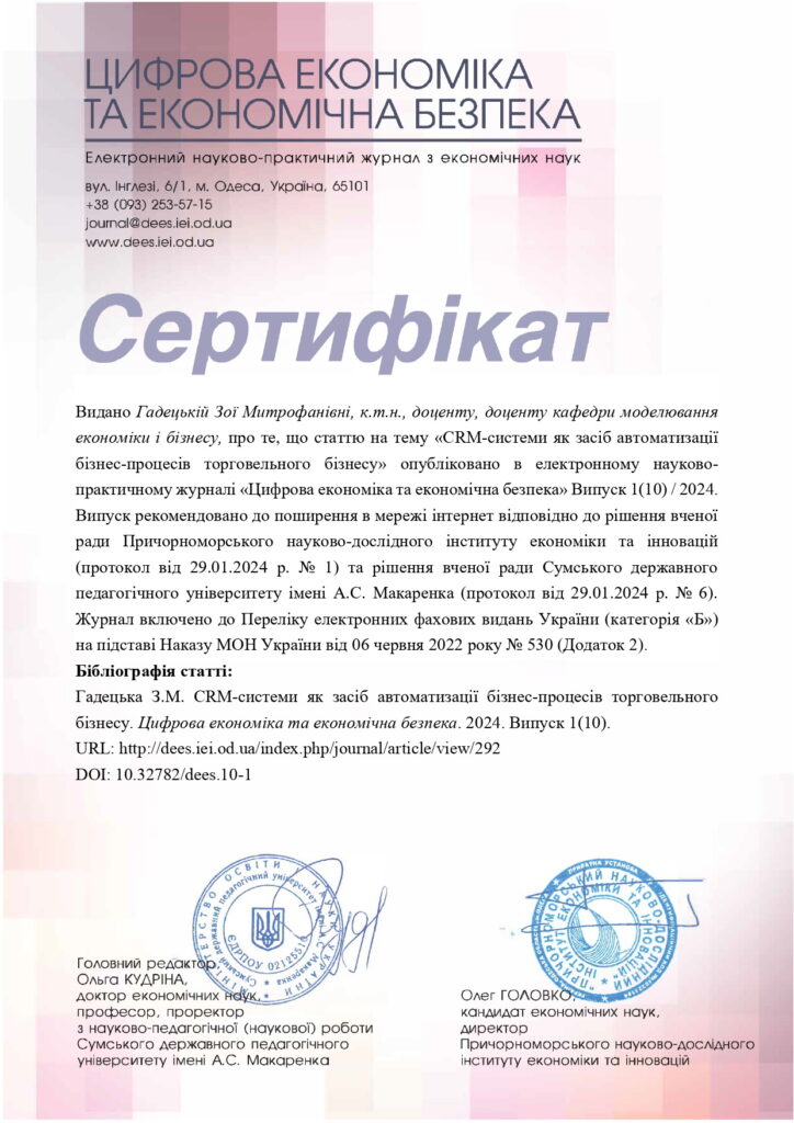 кандидат економічних наук, доцент