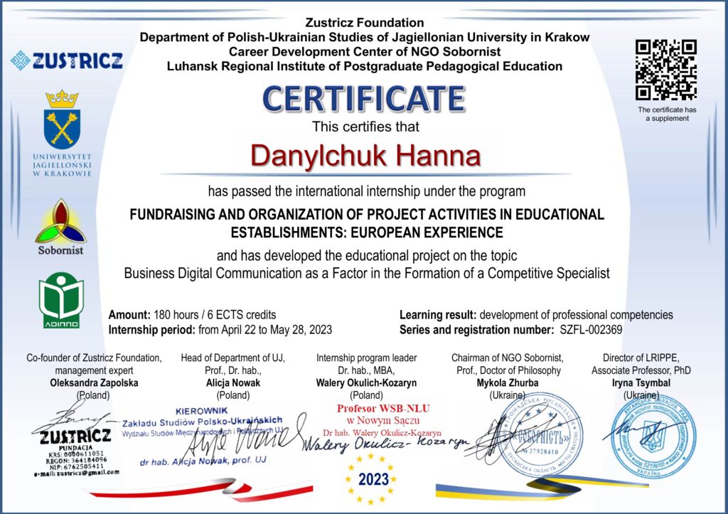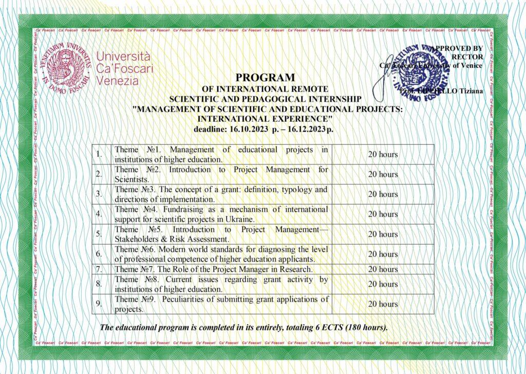 Співробітники кафедри беруть участь у наукових конференціях як в Україні, так і за кордоном, у стажуваннях та підвищенні кваліфікації науково-педагогічних працівників, публікують власні наукові доробки у вітчизняних та закордонних виданнях (зокрема у виданнях, які включені до наукометричних баз, рекомендованих МОН — Scopus, Web of Science Core Collection), вивчають зарубіжний досвід у сфері вищої освіти, застосовують новітні освітні технології, беруть участь у спеціалізованих дисертаційних радах; мають сертифікати, що підтверджують їх високий професійний рівень.