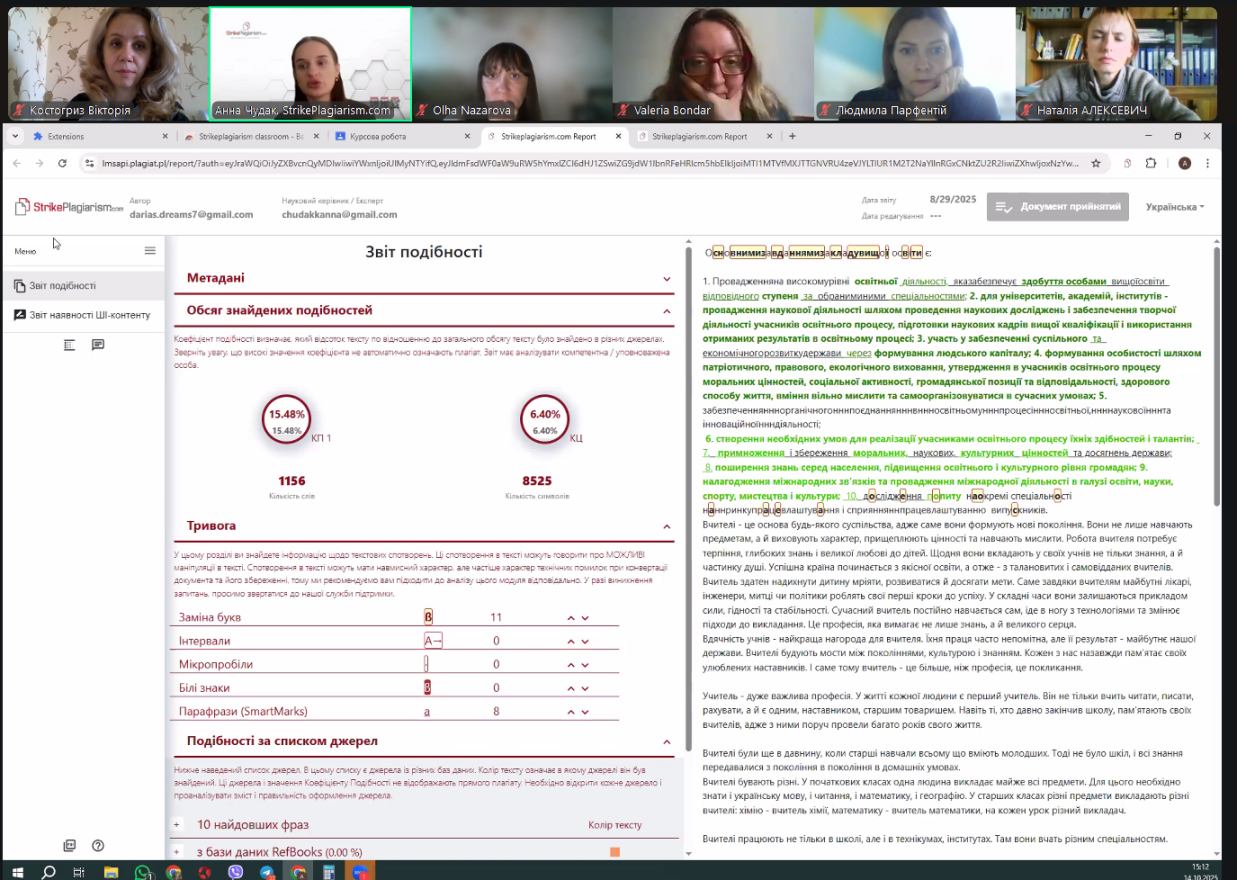 14 жовтня 2025 року викладачі кафедри обліку і фінансів були присутні на зустрічі з представниками академічної антиплагіатної компанії StrikePlagiarism.com. Зустріч