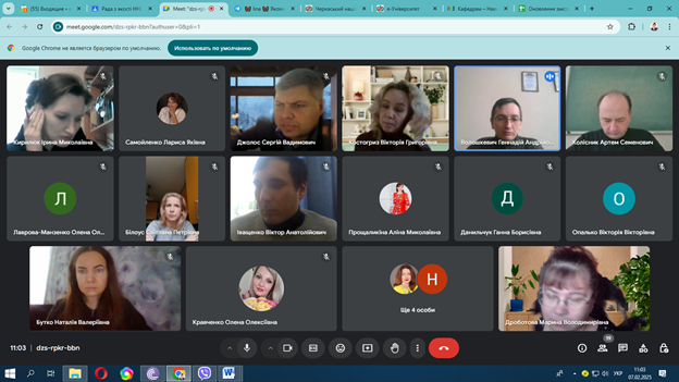 7 лютого 2025 року відбулось засіднання ради з якості ННІ економіки і права – основним предметом обговорення стали зміни освітніх програм інституту та обговорення результатів опитування здобувачів 1-4 курсів ОС Бакалавр, 1-2 курсу ОС Магістр щодо рівня їх задоволеності якістю освітнього процесу за освітньою програмою.