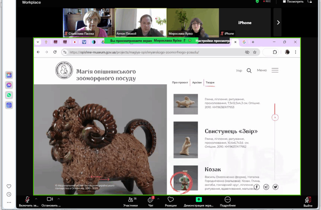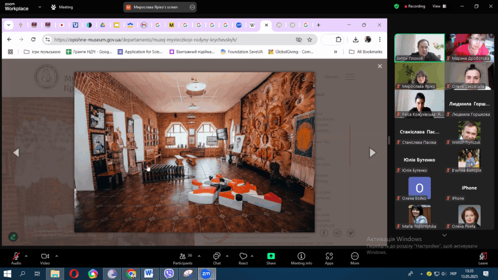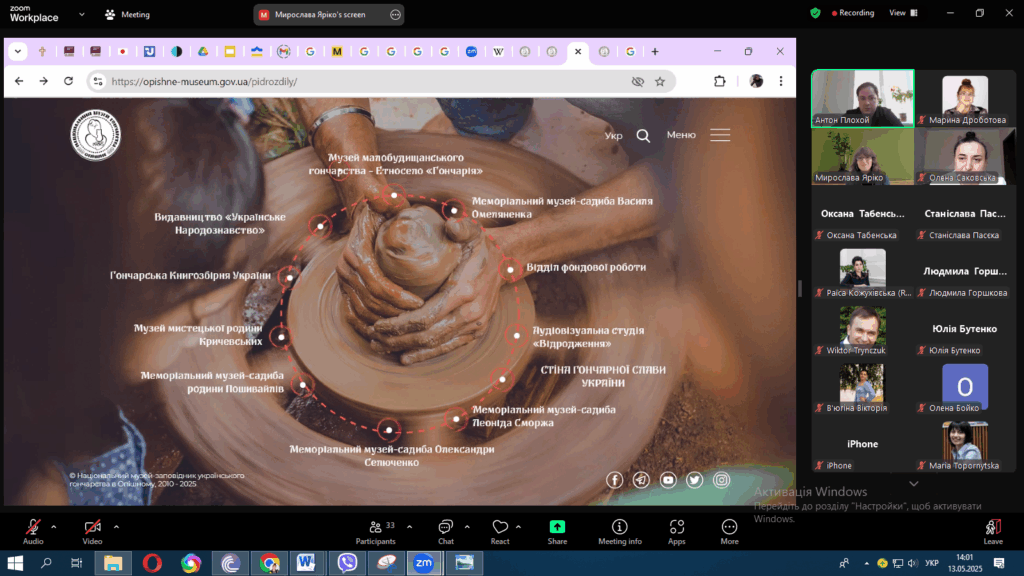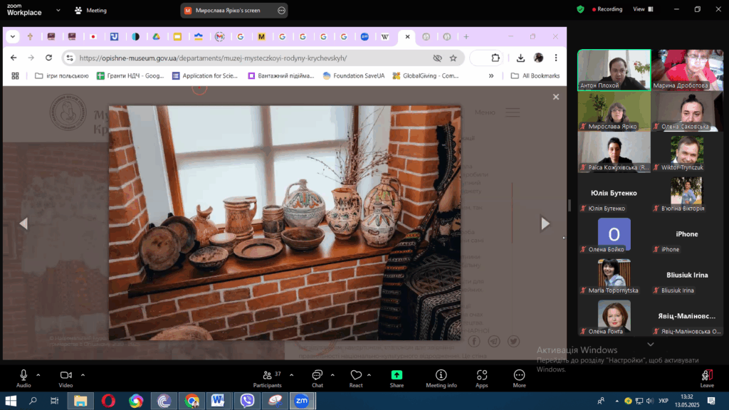 13 травня 2025 р. студенти кафедри туризму і готельно-ресторанної справи онлайн відвідали Музей мистецької родини Кричевських, філію Національного музею-заповідника українського гончарства в Опішному. Директор Антон Плохой цікаво розповів про діяльність музею і про фестивалі гончарства та ковальства, які щорічно (до карантину) проходили в с. Опішне.