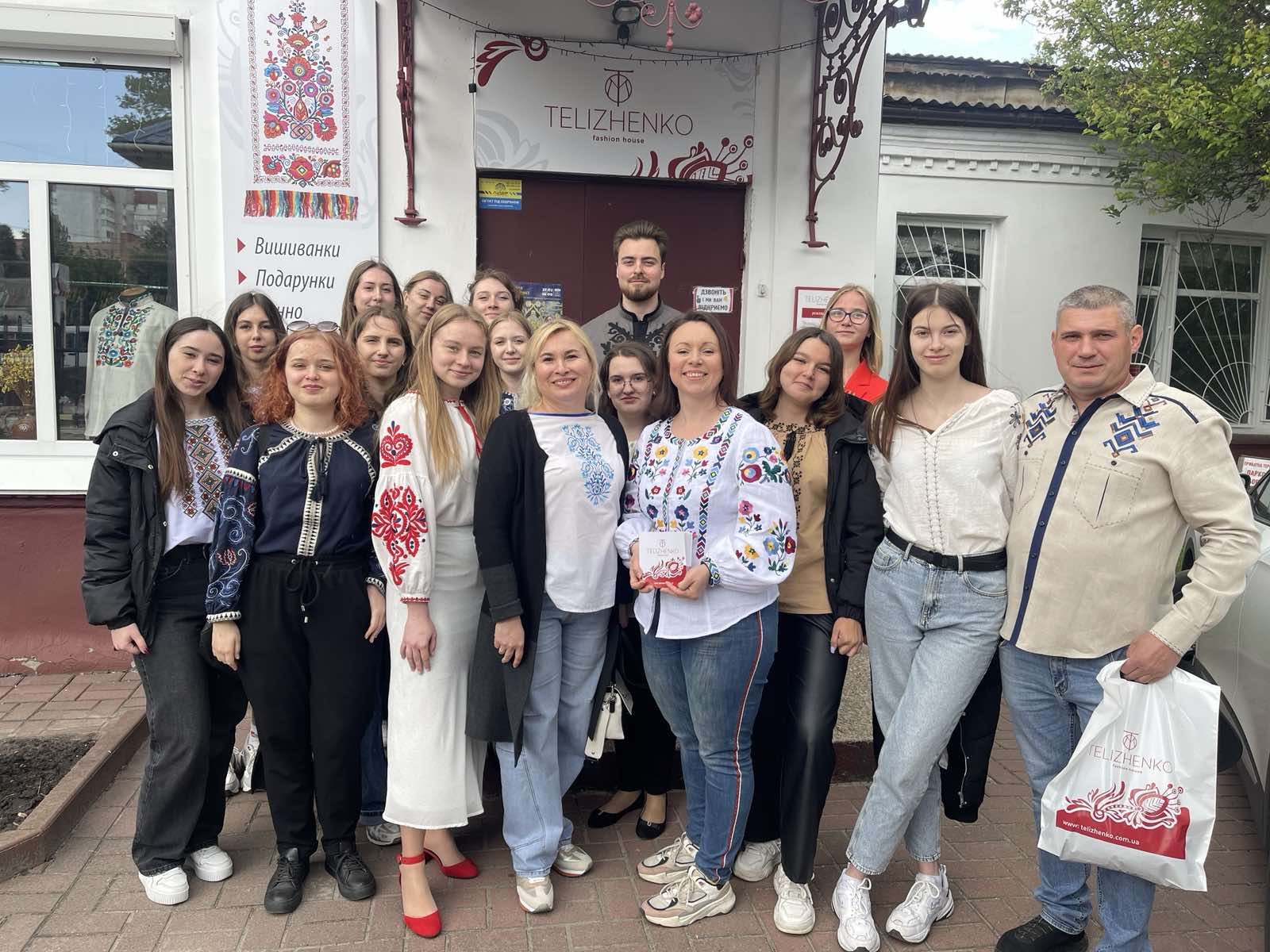 14 травня 2025 року в межах вивчення освітньої компоненти «Етика бізнесу» (викладач – доцентка Анжела Гриліцька), студенти спеціальності D3 «Менеджмент» ННІ економіки і права ЧНУ ім. Б. Хмельницького відвідали майстерню вишиванок знаної мисткині Олександри Теліженко — осередок української душі, мистецтва й традицій.