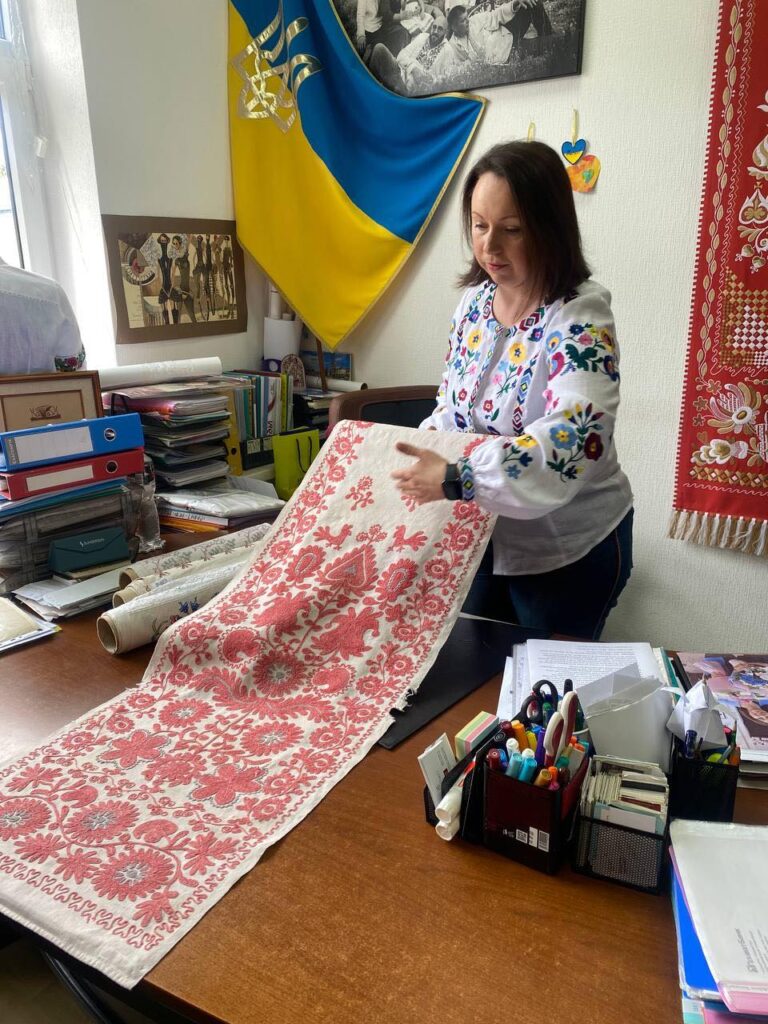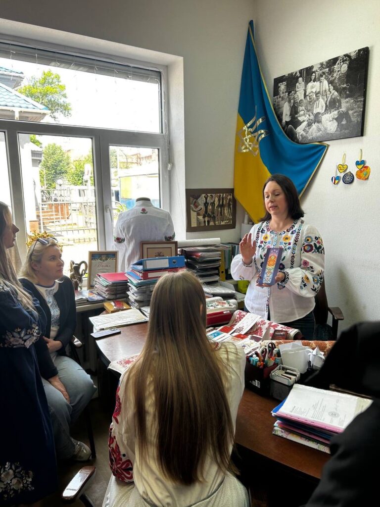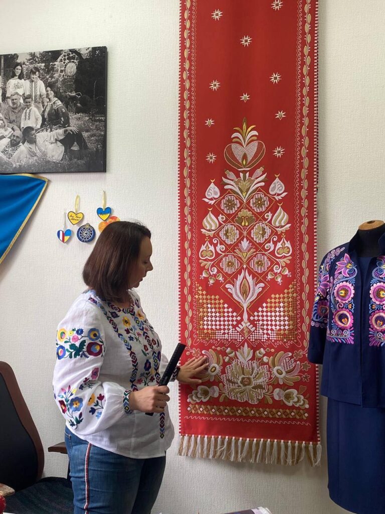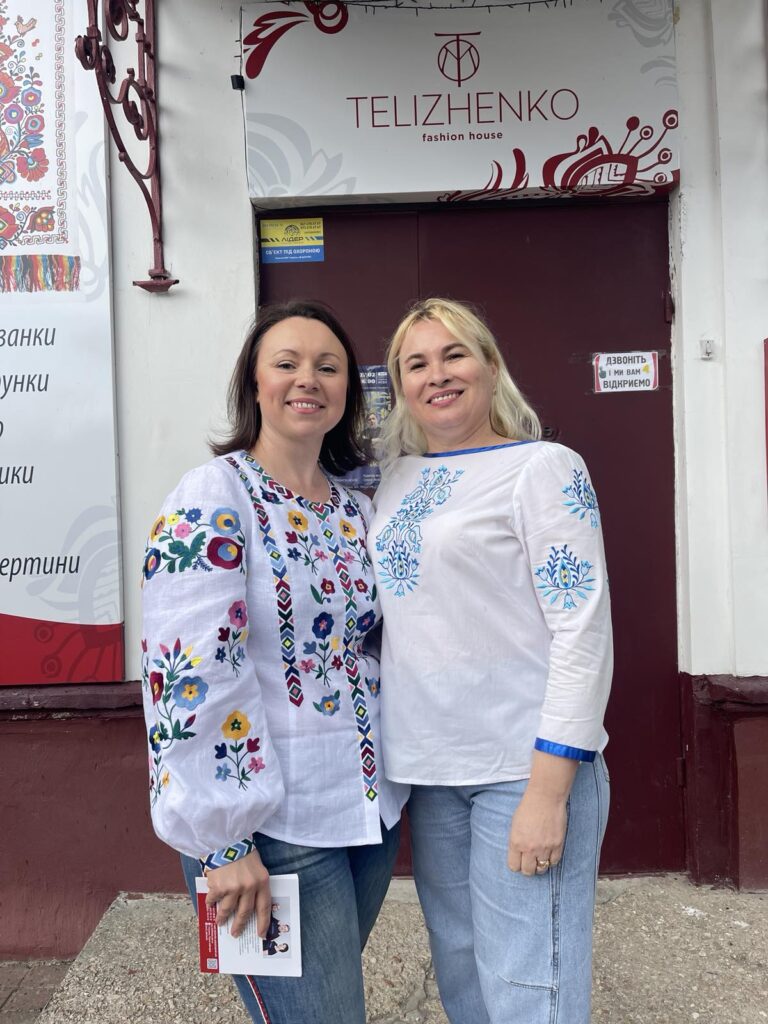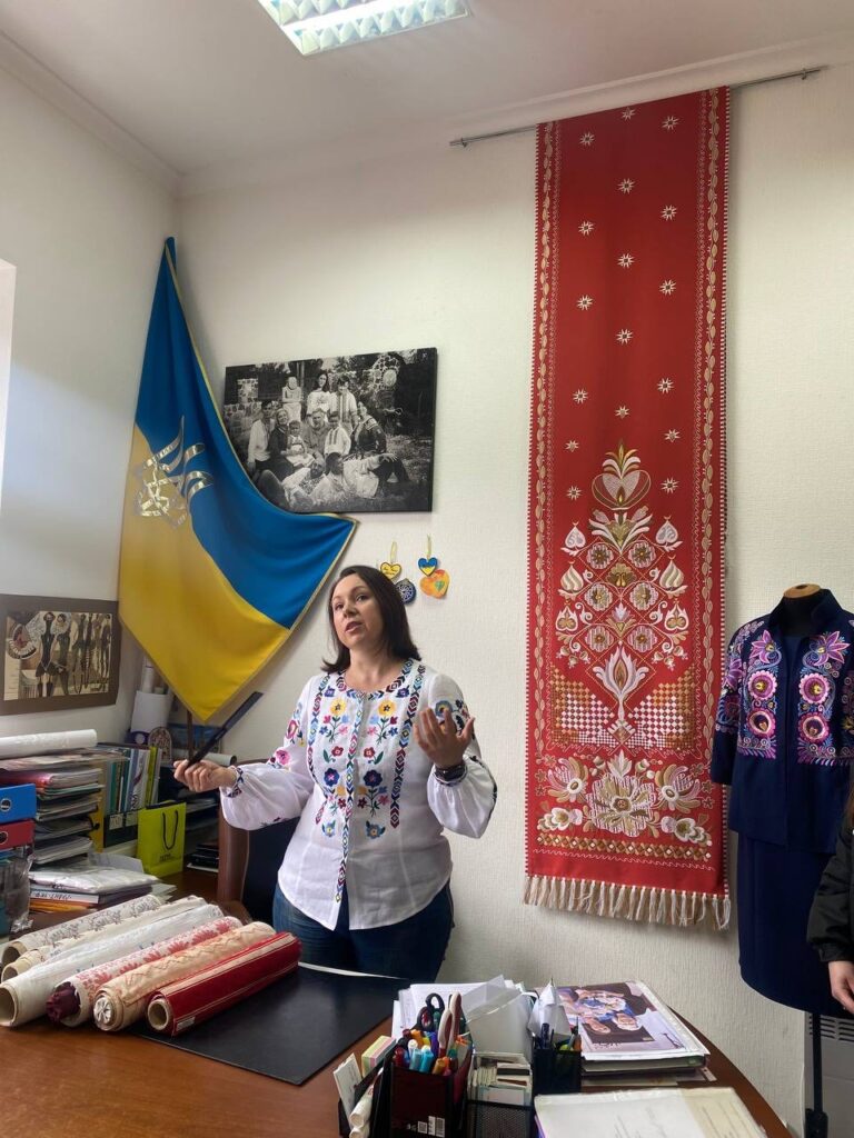 Зустріч проходила під натхненним керівництвом пані Олесі Теліженко — доньки Олександри Теліженко, яка продовжує родинну справу з глибокою повагою до традицій та любов’ю до кожного стібка. Пані Олеся провела змістовну екскурсію, поділилася історією майстерні, філософією творчості та розповіла про те, як культурні цінності можуть бути основою етичного бізнесу.