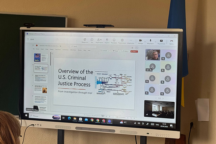Тема лекції: «Overview of the U.S. Criminal Justice Process». Захід відбувся в дистанційному форматі та об’єднав слухачів усіх курсів юридичного напряму підготовки, ставши черговим кроком у розвитку міжнародного наукового та освітнього партнерства університету.