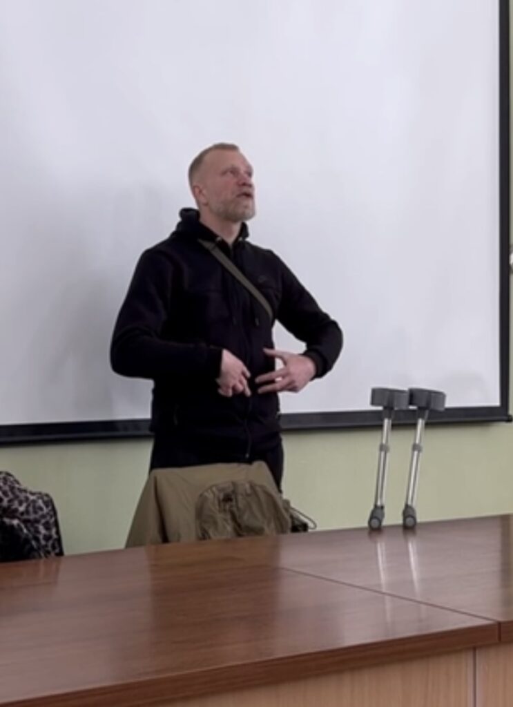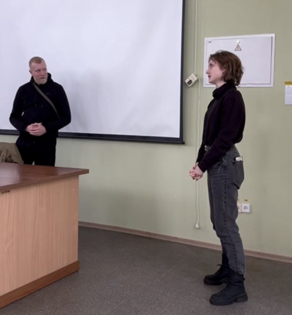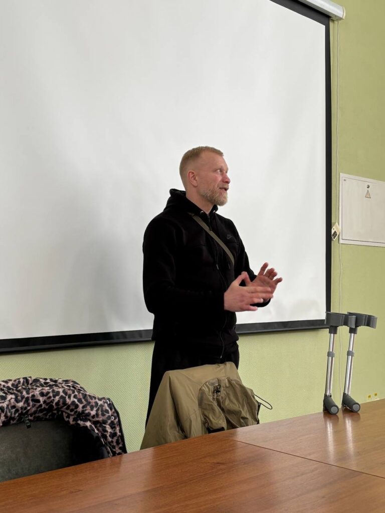В рамках дисципліни «Вступ до фаху» теми: «Лідерство і командна робота» та дисципліни «Масові комунікації у публічному управлінні» у здобувачів освіти ННІ економіки і права спеціальностей D3 “Менеджмент» та D4 “Публічне управління та адміністрування» проведено тренінг. «Комунікація лідера: сила слова та публічний виступ», який провів Андрій Валенський, актор театру та кіно, військовий.