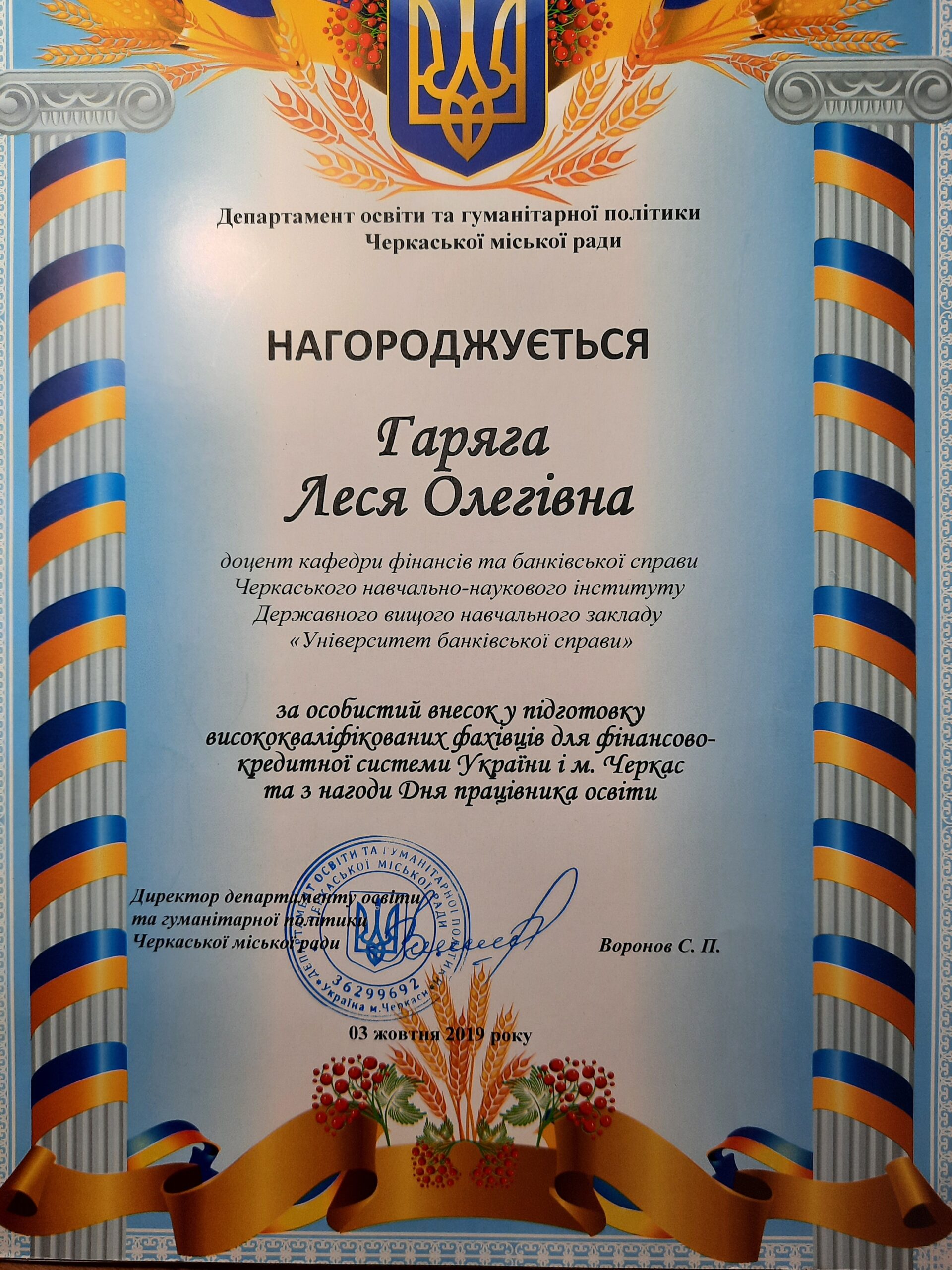 Корпоративний email: garyagalo@vu.cdu.edu.ua