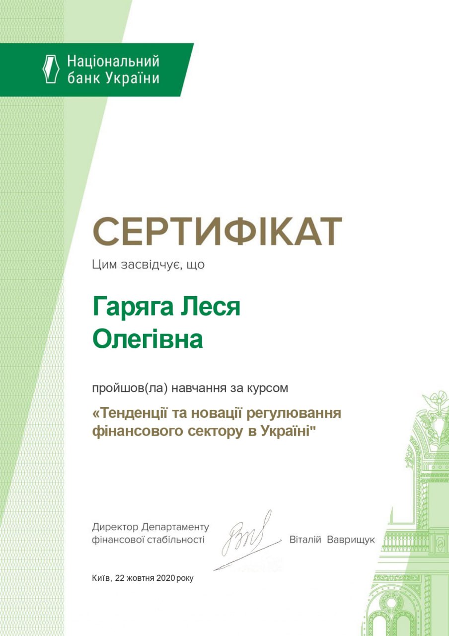 - – Тенденції та новації регулювання фінансового сектору в Україні, 2020;