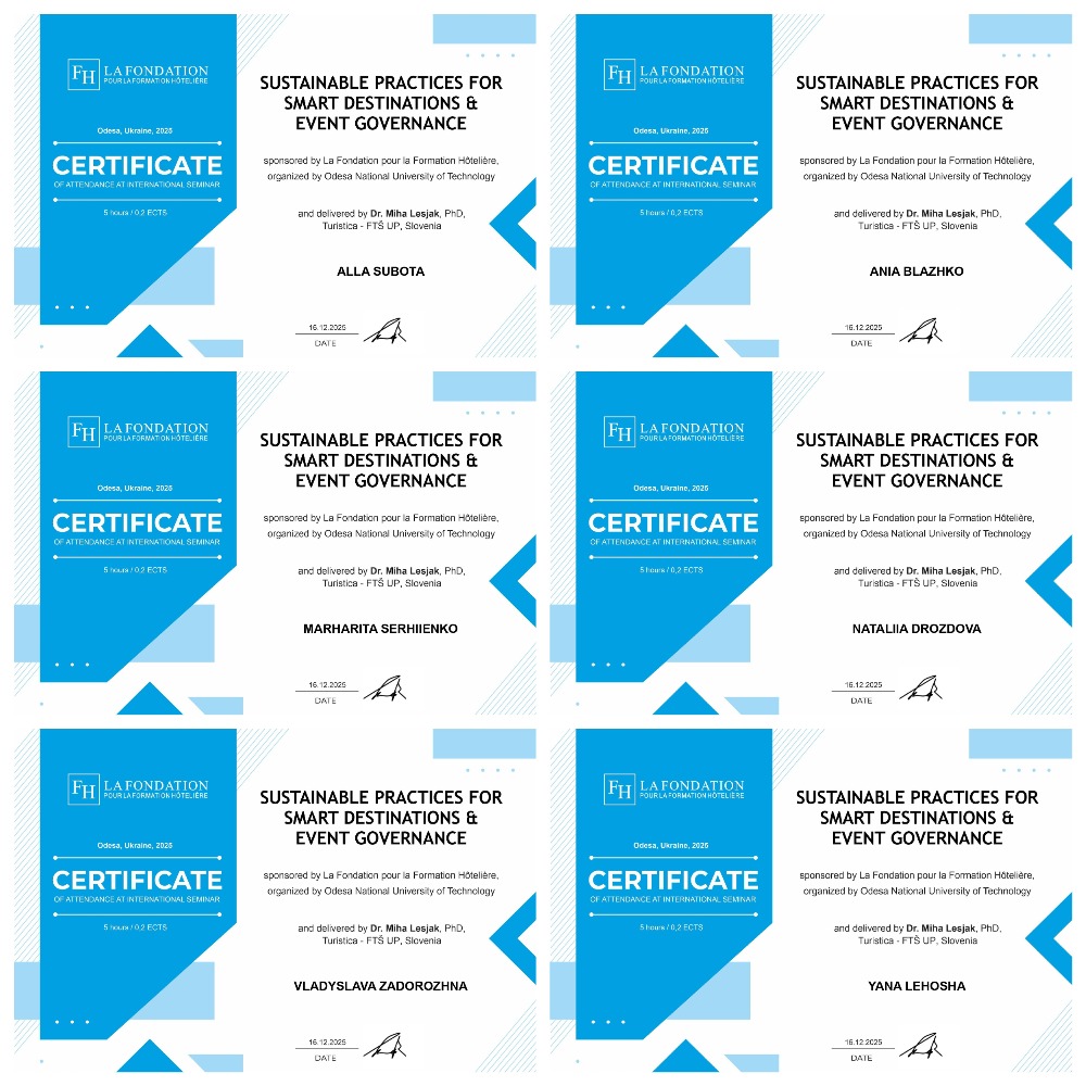 15 грудня 2025 року доцент кафедри туризму і готельно-ресторанної справи Вікторія Красномовець разом зі студентами взяли участь у міжнародному онлайн-вебінарі «Cuisine and Restaurant Business of Slovakia».