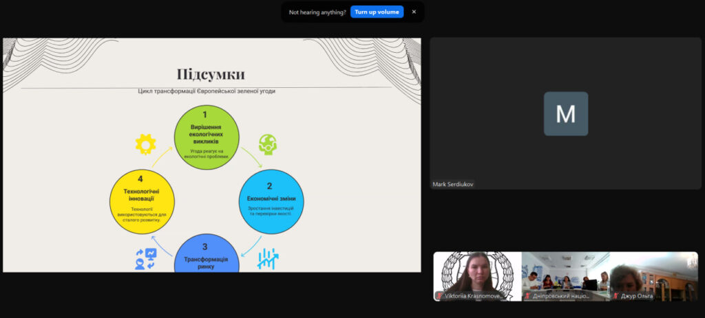 У період з березня по травень 2025 року доценти кафедри туризму і готельно-ресторанної справи ЧНУ Вікторія Красномовець та Марина Дроботова взяли активну участь у реалізації міжнародного освітнього проєкту «Європейський зелений курс як перспектива сталого економічного розвитку» (EUGDProSED), що реалізується на базі факультету економіки Дніпровського національного університету імені Олеся Гончара за підтримки програми ЄС Erasmus+ Jean Monnet.