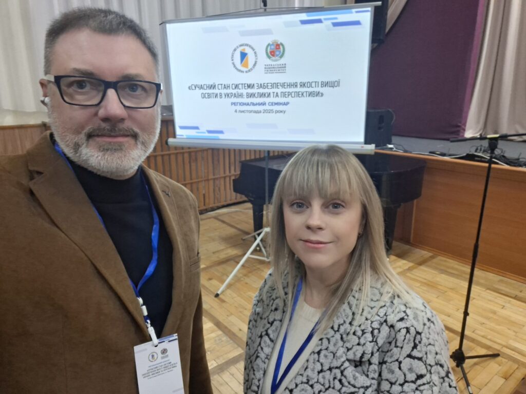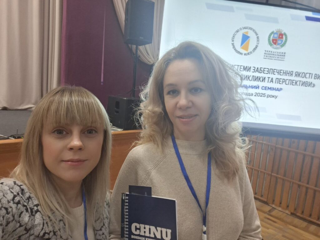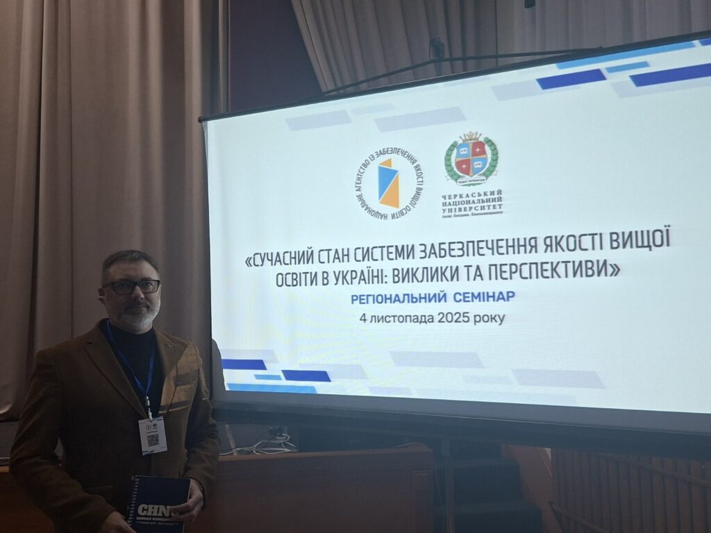 4 листопада 2025 року викладачі кафедри обліку і фінансів відвідали регіональний семінар на тему «Сучасний стан системи забезпечення якості вищої освіти в Україні: виклики та перспективи». Захід відбувся у м. Черкаси на базі Черкаського національного університету імені Богдана Хмельницького.