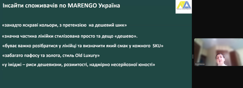 Вебінар визвав жвавий інтерес та активне обговорення. Тетяна Іванцова поділилась практичним досвідом формування збалансованого портфеля, шляхами вирішення проблем, пов’язаних зі скороченням основного сегменту, формуванням комунікаційної платформи та стратегії просування на прикладі бренду Маренго. Слухачі мали можливість почути інформацію про ключові KPI, які показують результати роботи маркетингу, та ознайомитися з ознайомитися з реальним успішним кейсом.