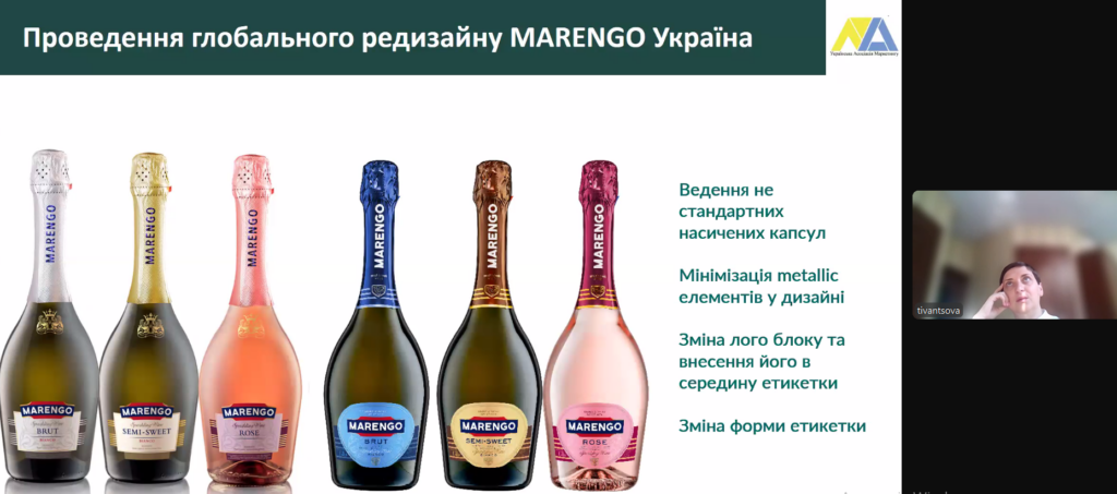 На вебінарі слухачі познайомилися з позиціонуванням бренду Маренго, рефомуванням портфеля ігристого, формуванням комунікаційної платформи та стратегії просування, а також результатами розвитку портфеля 2021-2024 років.